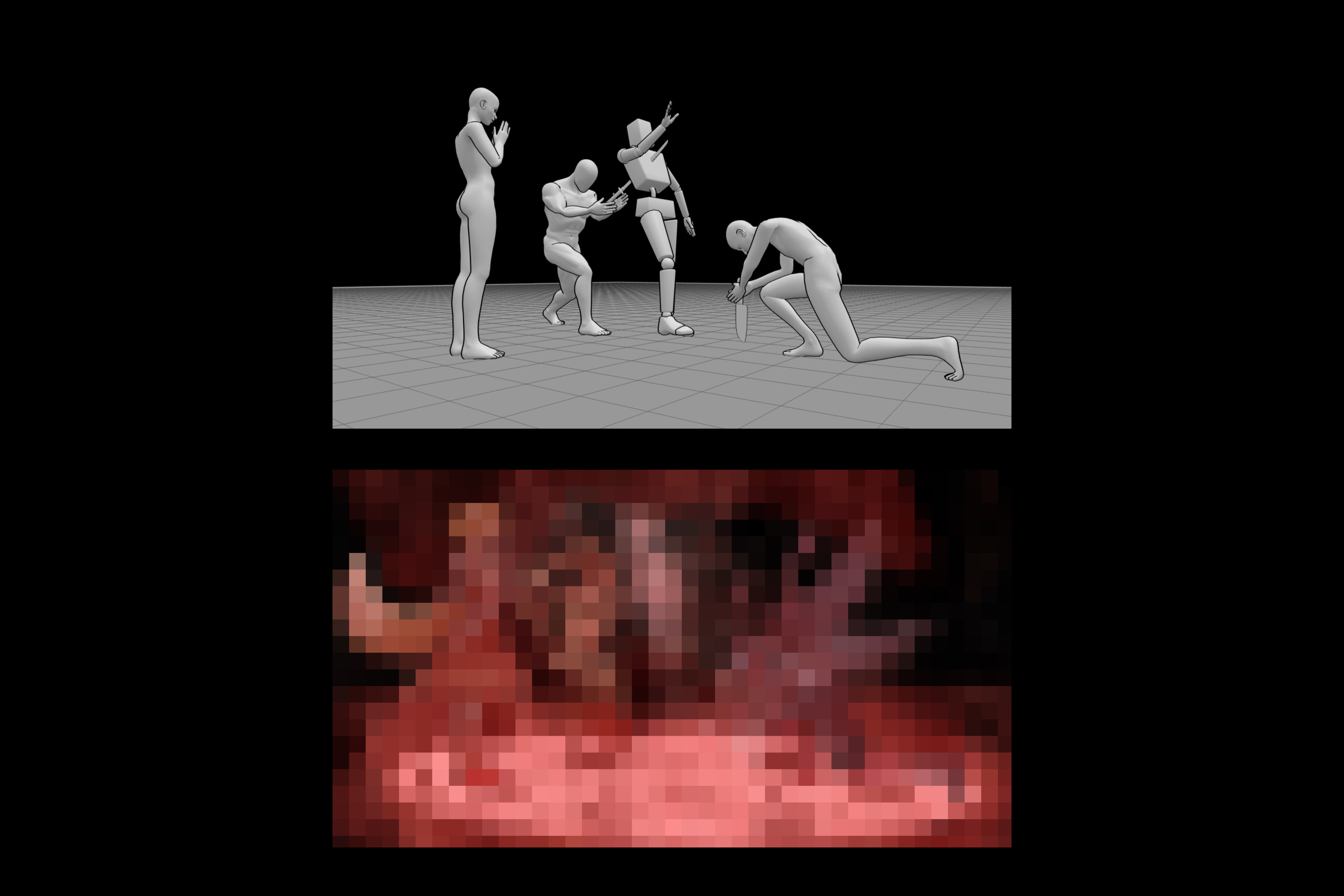 The CG for True Ending involved the entire cast together, as it’s the scene where the LIs seal the Yamakui away, once and for all. I really wanted a fun, dynamic scene in front of the shrine where you could see each character fulfilling their unique role in the ceremony, with all their faces visible to the player/camera. To help myself, I used a tool called PoseMy.Art to position each character, with reference to their scale and angle. Once I was happy with the modelling, I exported it as an image to serve as a base to paint over.