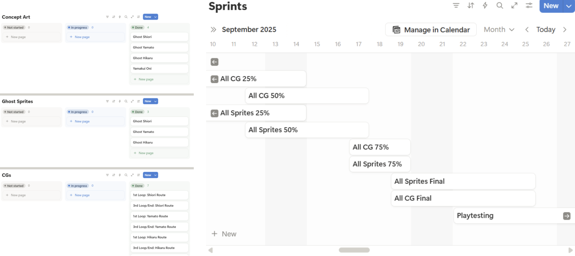 I told Azure from the get-go that I was comfortable handling both CGs and monster designs, then later established a pipeline with Akua for monster sprites. This gave me peace of mind since we were all on the same page about expectations and work.